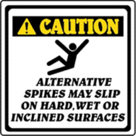 Hinweis-Schild, "CAUTION ALTERNATIVE SPIKES MAY..."
