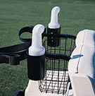 Pulverbeschichteter Stahlhalter mit Befestigung für Golfcars. Flasche mit Deckel aus Kunststoff.