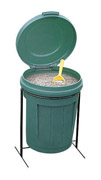Eine Polyethylen-Konstruktion mit Deckel, Schöpflöffel und Drahtständer.