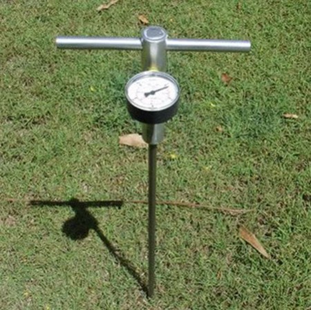 zur Ermittlung des Eindringungswiderstandes und somit die Dichte des Bodens (wiederum ein Maß zur Bestimmung der Tragkraft und der Durchwurzelbarkeit) verwendet. Die Anzeige erfolgt in PSI