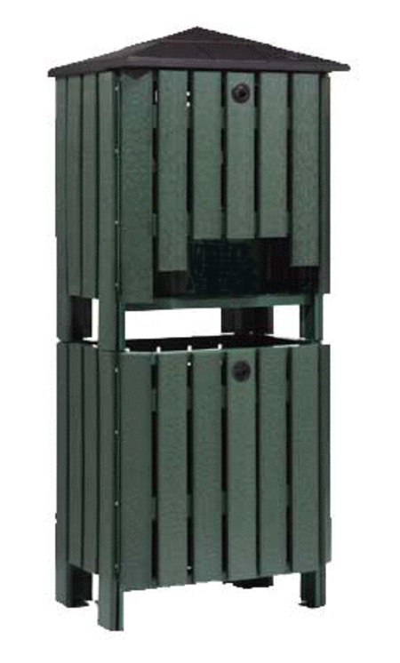 Holzähnliche Latten aus recyceltem Kunststoff auf einem pulverlackiertem...
